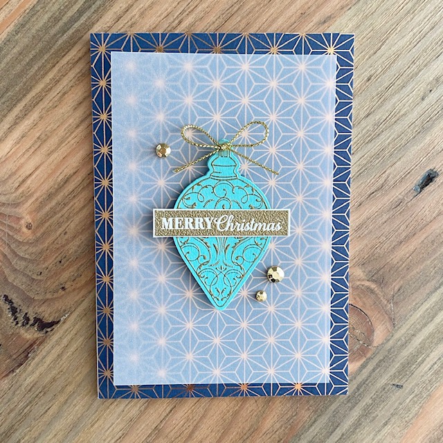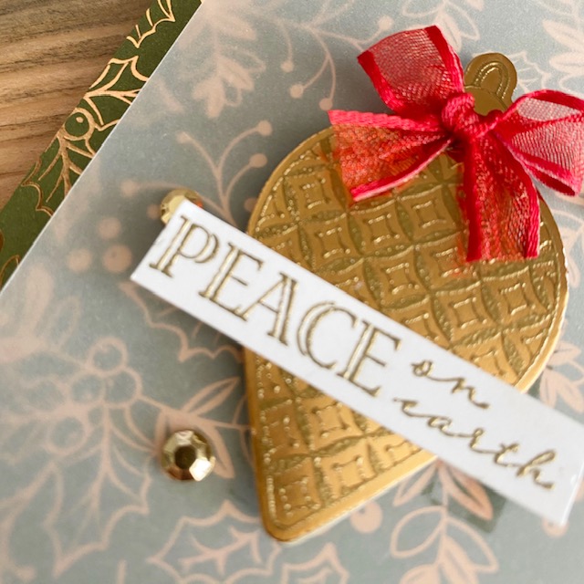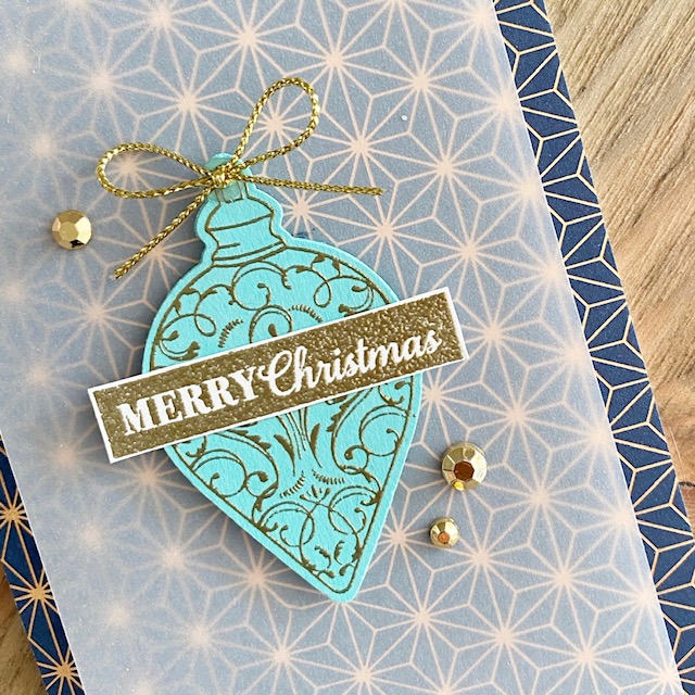 I decided to change my process up a bit this time! Instead of going through my normal slow trial and error process, I started by Gold embossing a lot of the ornaments from the Christmas Gleaming Stamp Set on different colored card stocks, stamping sentiments, die cutting labels, etc. before I started playing around on my card fronts. I used Crumb Cake, Mossy Meadow, Night of Navy, Shimmery White and Coastal Cabana. I had so much fun!