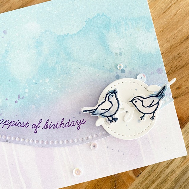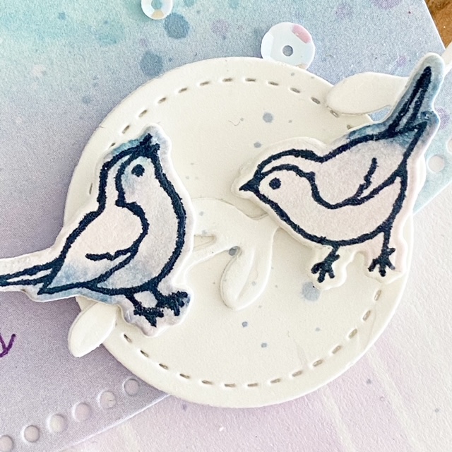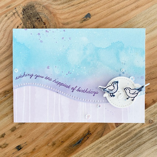 Todays card features a little bit of die cutting, the tiniest bit of water coloring and simple ink stamping! That’s it! The rest is all thanks to the Curvy I used the Snowflake Splendor Designer Series Paper and the Playing with Patterns Designer Series Paper (both packs are at 15% discount for October 2020!!) and they work so well together! I love the color combination of Balmy Blue, Highland Heather and Misty Moonlight!