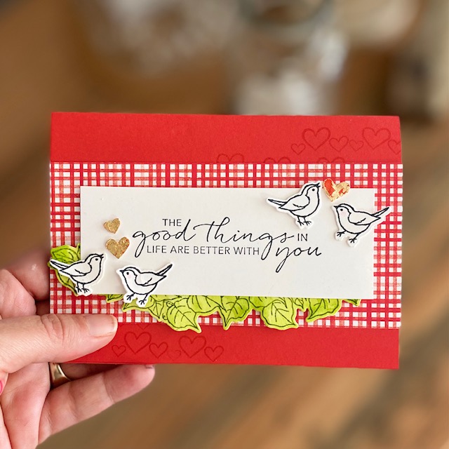 Tip! I used scraps from my Scrappy Box for the vine, birds and sentiment strip (measuring 12cm x 4.5cm).
