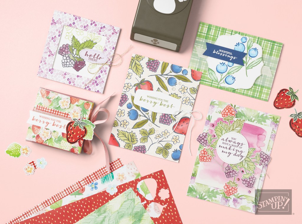 I am still having so much fun with the Sweet Strawberry Bundle and the coordinating Berry Delightful Designer Series Paper (a SALE-a-bration freebie).