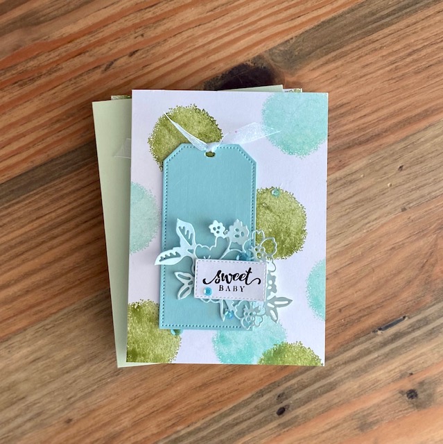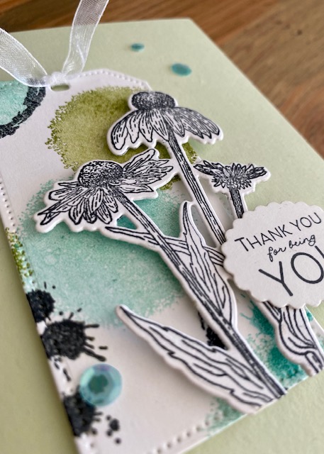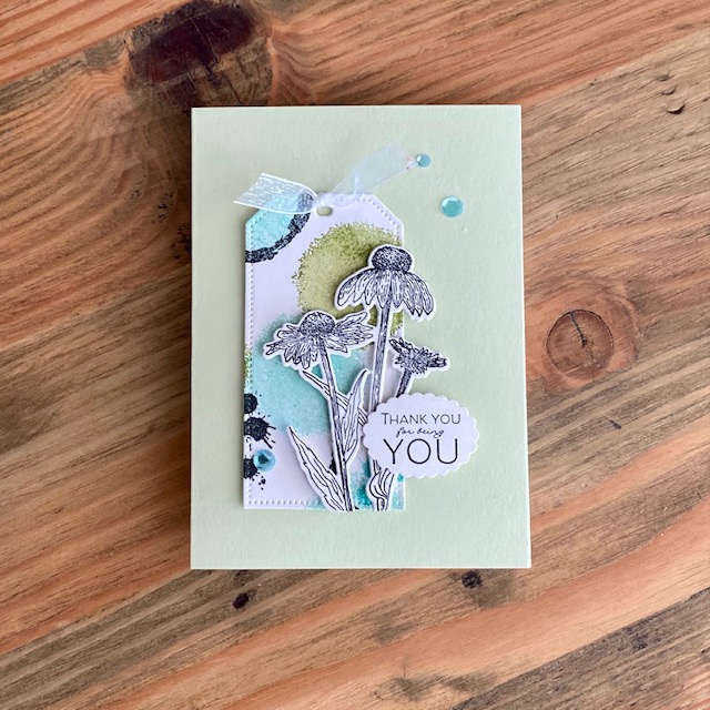 The colourful tag was created with the Textures & Frames stamp set (ONLY available as a FREE product with a qualifying order during SALE-a-bration until 30 September 2021).
