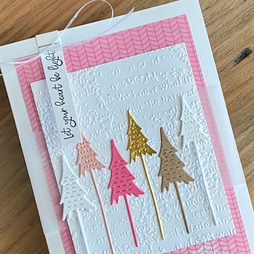 I LOVE your pink and gold forest!! It’s so pretty with the textured background and the soft vellum. Thank you for playing along with us at Freshly Made Sketches.