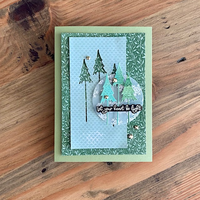 My favourite part about Stampin Up! is most probably the coordinating products! It is just so easy! Paper, ink and embellishments… everything coordinates. My next favourite thing about Stampin Up! products? There is so much choice! For this Christmas card, I use Mint Macaron, Pear Pizzazz, Garden Green and Just Jade – just a few of our range of Greens! There is so much to explore!