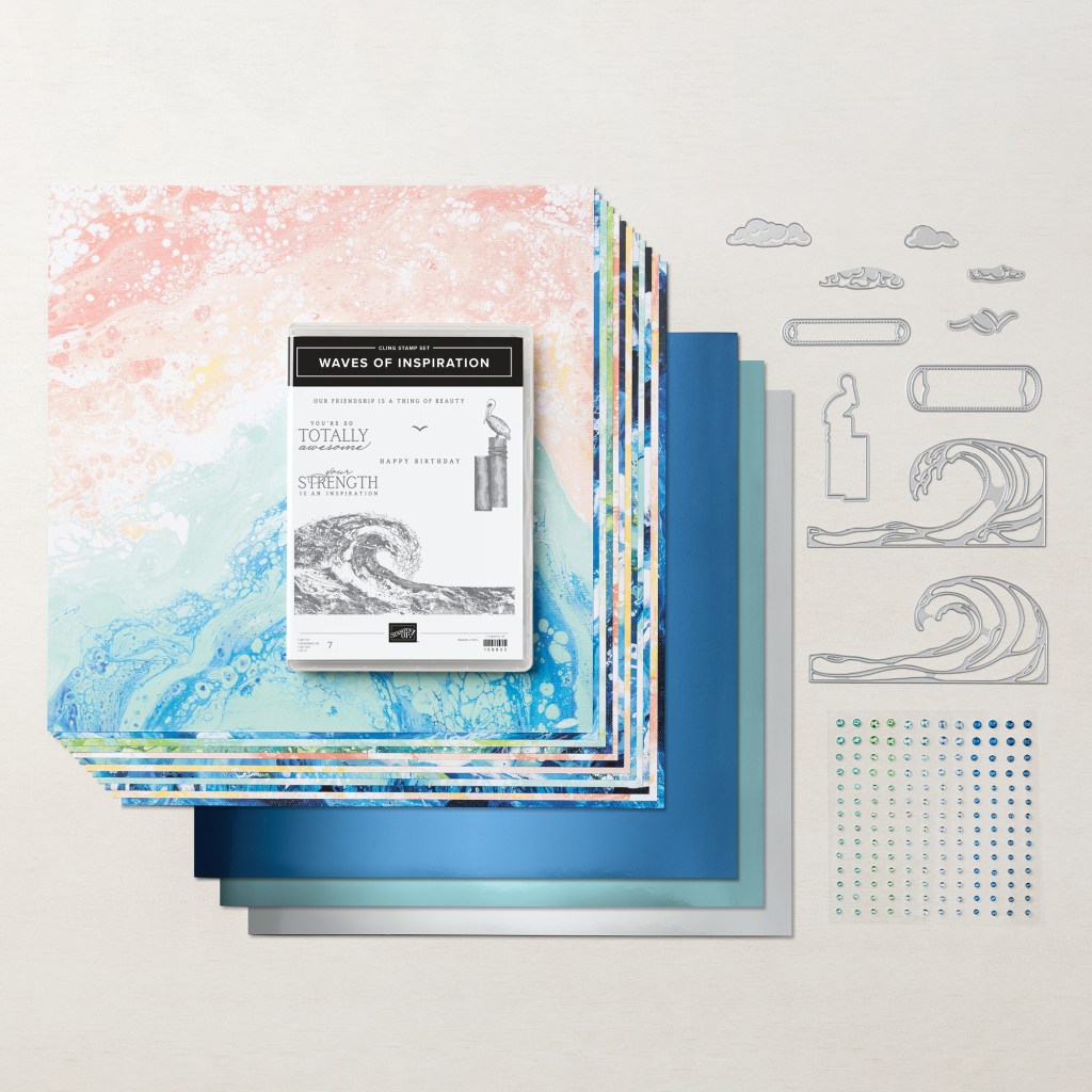 Hello! Today I am sharing two projects that I created with the GORGEOUS Waves of the Ocean Collection. The full collection will only be available until 2 May 2022 or while products available (and believe me you don’t want to miss out!) but the Waves of Inspiration Bundle (includes the Waves of Inspiration stamp set and the Waves Dies) is an early release from the upcoming NEW Annual Catalogue. Buy the whole collection or purchase each product separately.