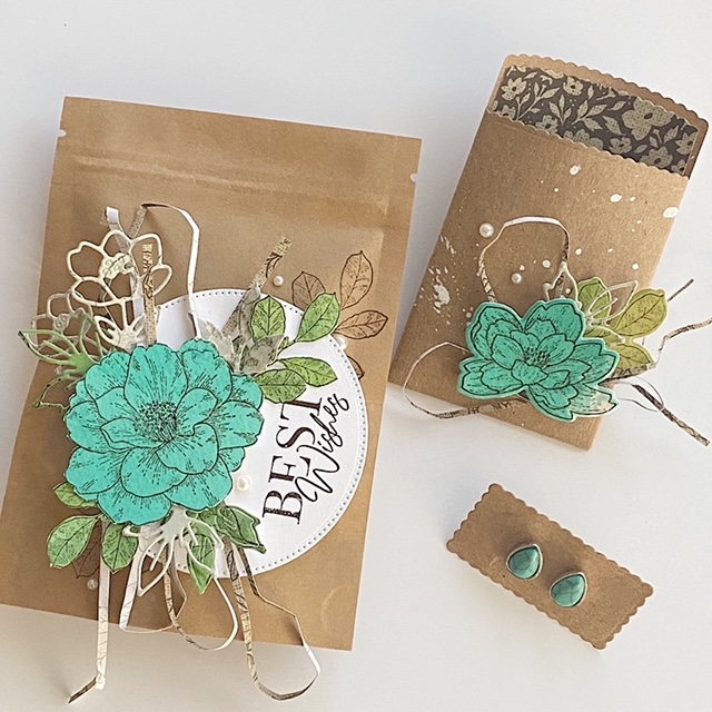 The Mini Pocket Envelope is perfect for a gift card but I thought that the tiny scallop label included in the die set, would word great for a set of ear rings! It was very easy to line the Mini Pocket Envelope with the beautiful, coordinating Abigail Rose DSP!