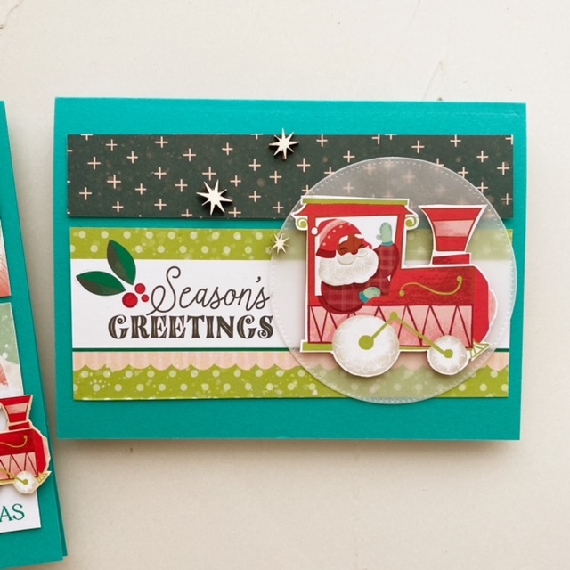 With the Santa Express Memories & More Card Pack and a little bit of fussy cutting these two cards came together fast!
