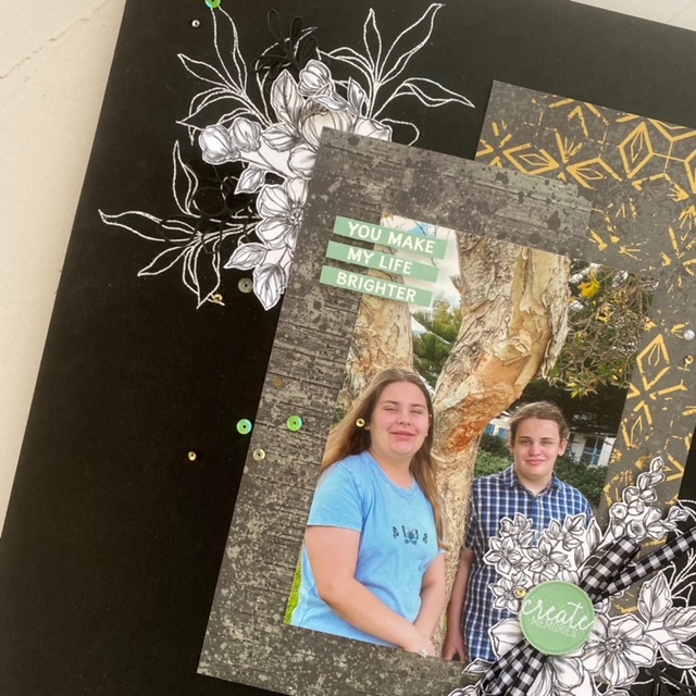 Today I will be sharing my very first Scrapbook page! I have always found a 12″ x 12″ size piece of paper very daunting! To be honest if it wasn’t for the pack of 12″ x 12″ Basic Black Cardstock included in a my recent Artisan Design Team Box, I’m not sure that I would’ve ever given it a go. I was also inspired by fellow Demonstrators on Instagram (@cindyschuster and @stampwithbrenda) and I think you will too!