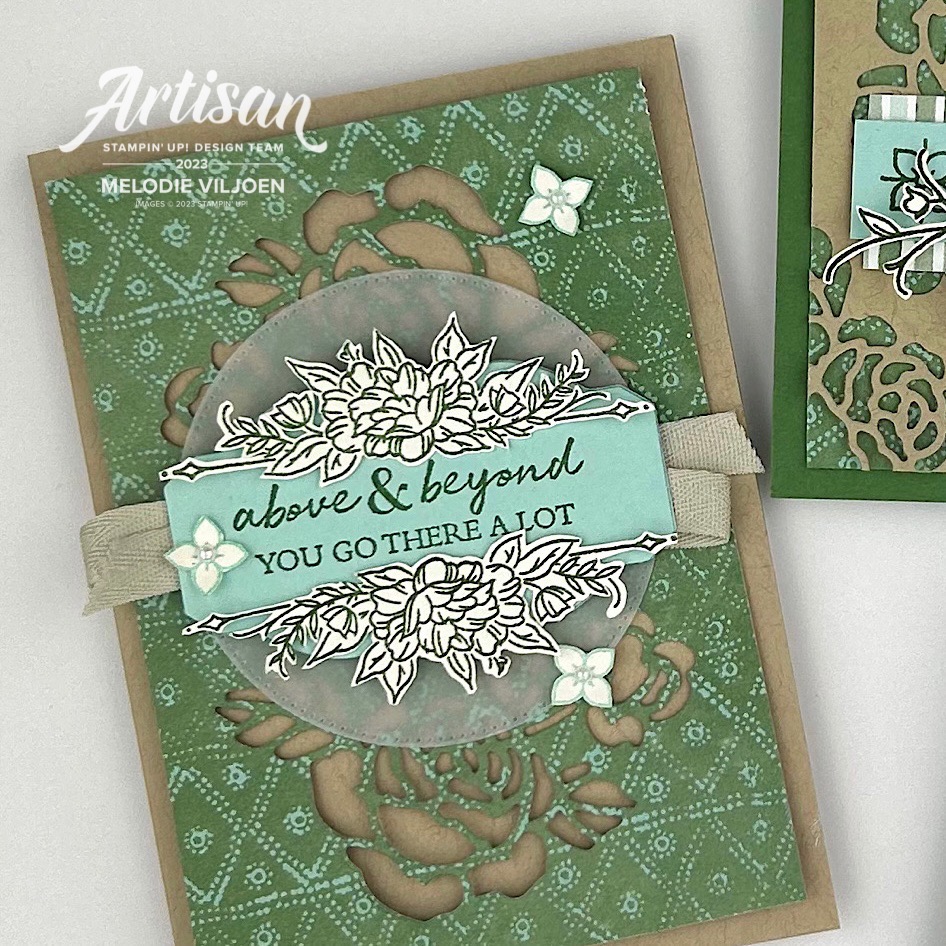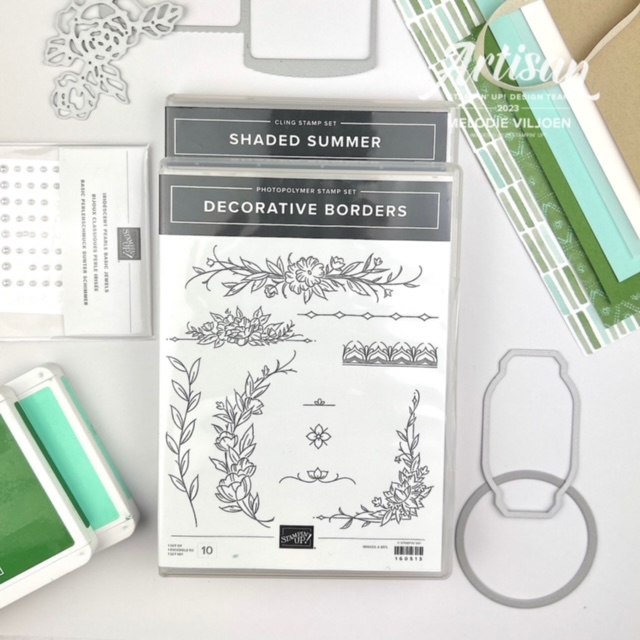 Hello! Today I’m sharing my first Artisan Design Team creative projects for 2023 (we get to do two of these during the year) and I had a ball mixing and matching products from my stash! The Decorative Borders Stamp Set has been on my mind for a while now, with the main question being…. to fussy cut or not to fussy cut? I might be a lazy cardmaker but I will never shy away from a little bit of fussy cutting…