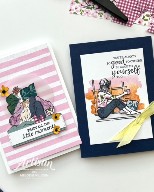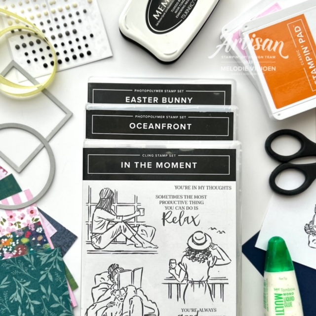 I had so much fun dressing up the stamped images from the In the Moment Stamp Set with some of my favourite Designer Series Paper patterns.