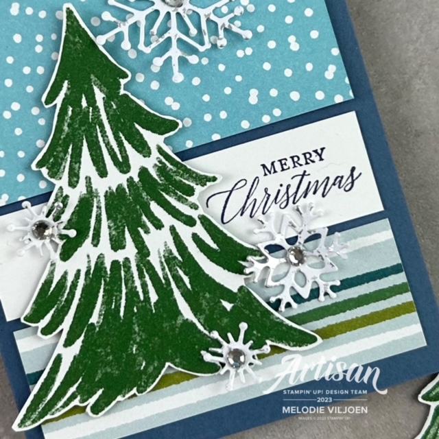 I wanted to highlight the beautiful A Walk in the Forest Designer Series Paper not only because it is beautiful and versatile but also (most importantly) with each purchase of the A Walk in the Forest DSP, Stampin’ Up! will donate $4.25 AUD to support organisations dedicated to spreading cheer this festive season. Some images coordinate with the Merriest Trees Dies and some with the Beary Cute Punch. I used my trusty Paper Snips Scissors to fussy cut some of the images.