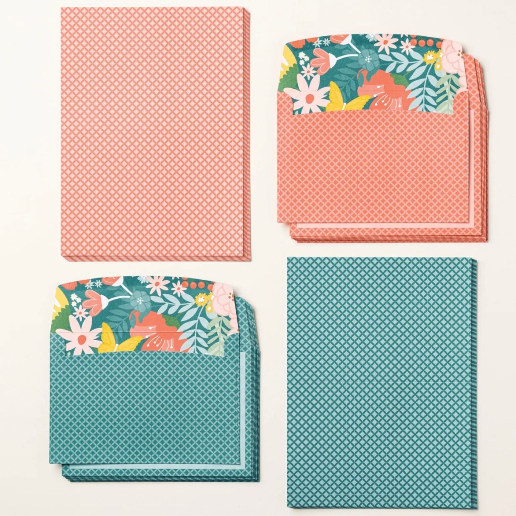 The colour inspiration for my card came from the floral design inside the envelopes as well as the card pack.