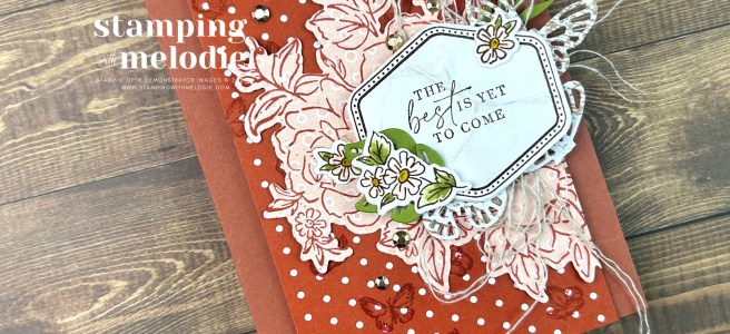 Hello! I wanted to share a card that I made with a very special person in mind… happy retirement Jenny! It is amazing to see how you are making the most of your well deserved free time! Jenny is one of the most amazing people I know (also my Stampin’ Up! up line!). The card … Continue reading The best is yet to come – Layers of Beauty, Sketched Butterflies and Heartfelt Hexagon