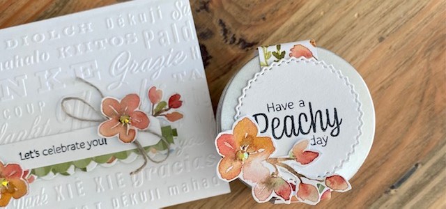 One of my all time favourite products from Stampin'Up!'s Annual catalogue is the Note cards & envelopes packs (a pack includes 20 cards and 20 envelopes for $12.25). Although I used a few different products to create today's ensemble (card, envelope and gift idea) most of the products are from the You're a Peach Suite. … Continue reading Let’s celebrate you!